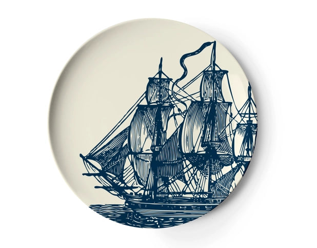 Our Scrimshaw Side Plates are part of the Nautical Side Dish Collection, drawing inspiration from the intricate carvings sailors once etched into whale bone aboard whaling ships. This set of four plates captures the beauty and craftsmanship of traditional scrimshaw, perfect for adding a unique, maritime touch to your table.