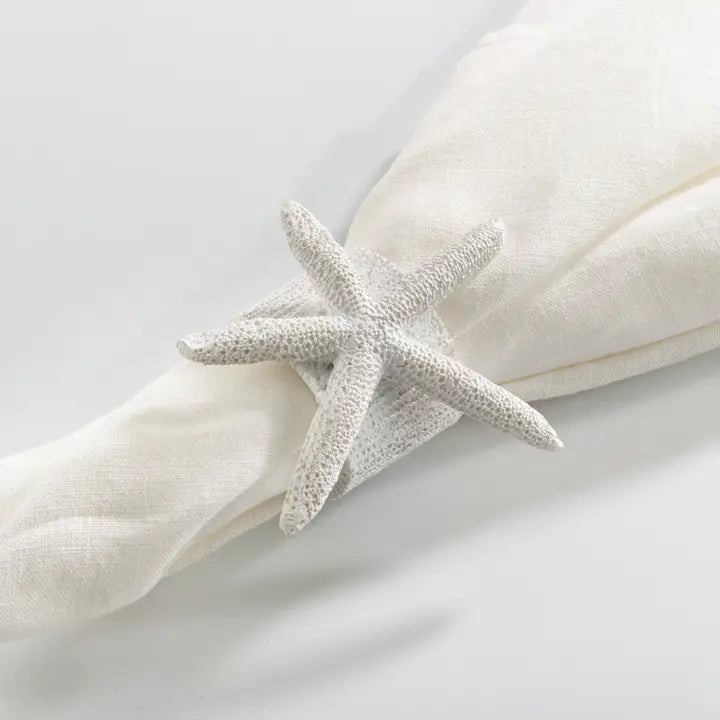 "Add a charming coastal touch to your nautical-themed tablescape with these adorable Starfish Napkin Rings. Designed to bring warmth and luminosity, they add a playful element that transforms any table setting. Perfectly paired with dark-toned, solid cotton napkins and placemats, these napkin rings complete your decor with coastal flair."