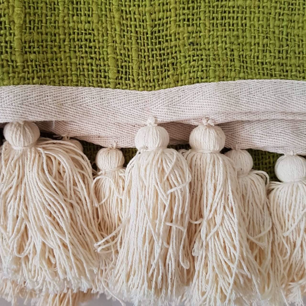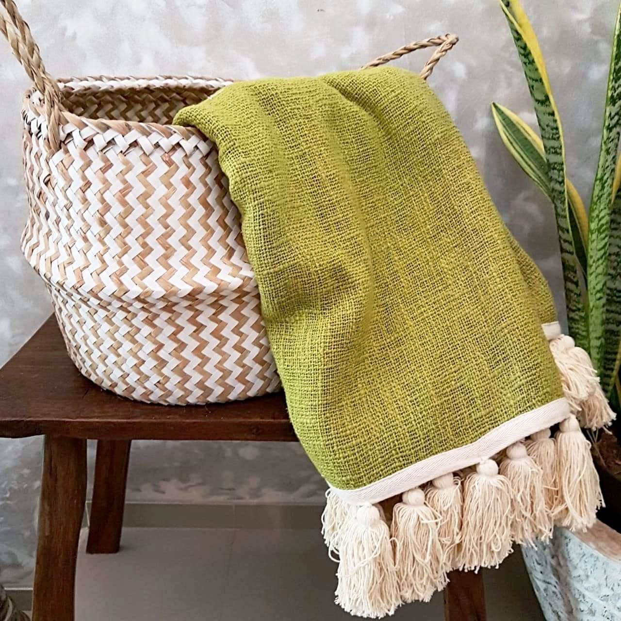 Découvrez ce magnifique jeté de luxe. Cet élégant jeté en coton brut uni, dans une belle couleur vert citron, est livré avec un ourlet blanc naturel et des pompons blancs naturels. Ce jeté est un accessoire parfait pour un lit, un salon ou une chaise. Complète tous les types de coussins. Jamais démodé. Un cadeau parfait.