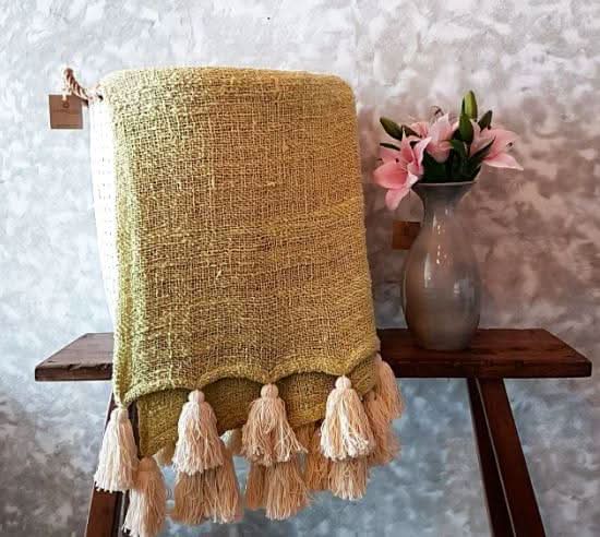 Découvrez ce magnifique jeté de luxe. Cet élégant jeté en coton brut très doux, dans une belle couleur vert bébé, est livré avec un ourlet vert bébé assorti et des pompons naturels. Ce jeté est un accessoire parfait pour un lit, un salon ou une chaise. Complète tous les types de coussins. Jamais démodé. Un cadeau parfait.