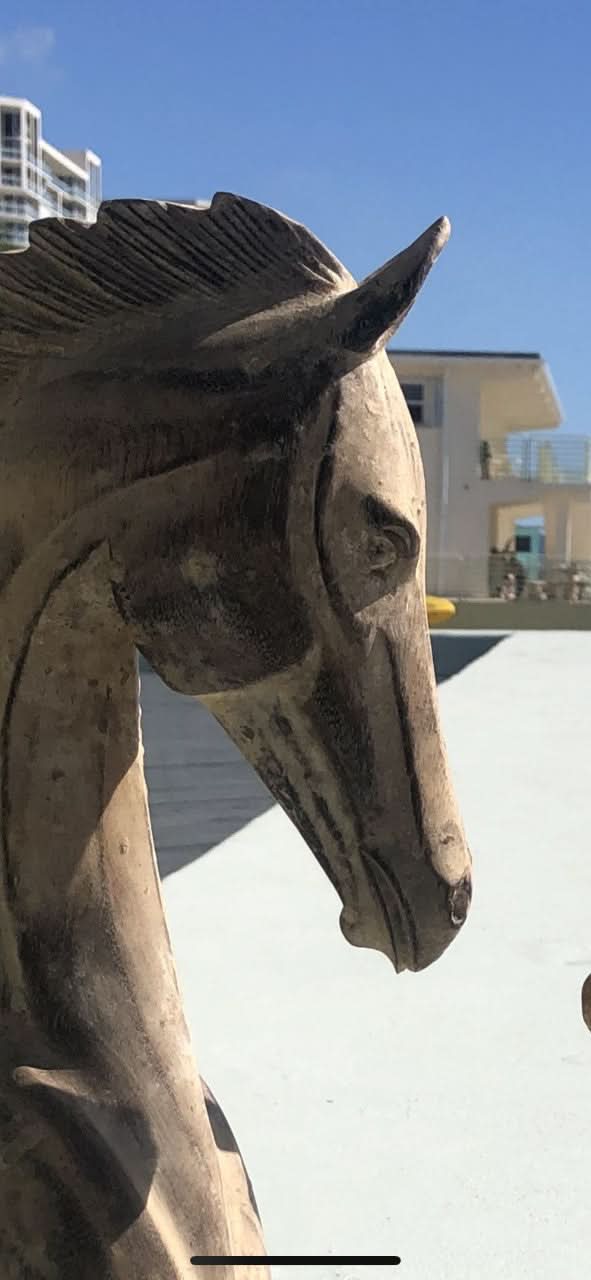 Hand carved Wooden Horse Statue Large in Dark Brown Wash