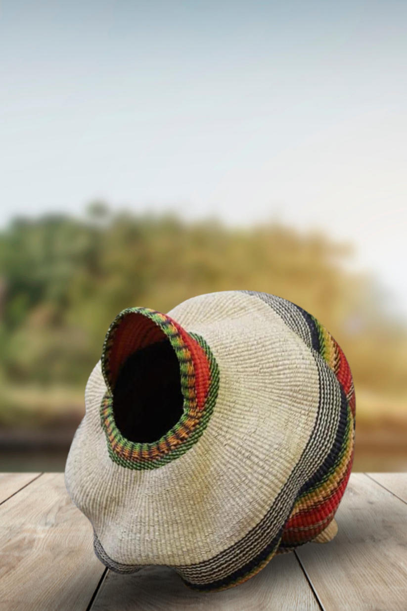 Twisted " Shell " Ghana Basket in Rasta Colors